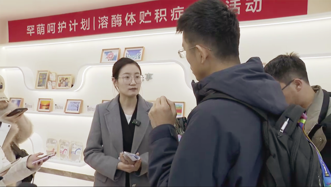 新华社记者(右)与北京罕萌诊所相关负责人交流。