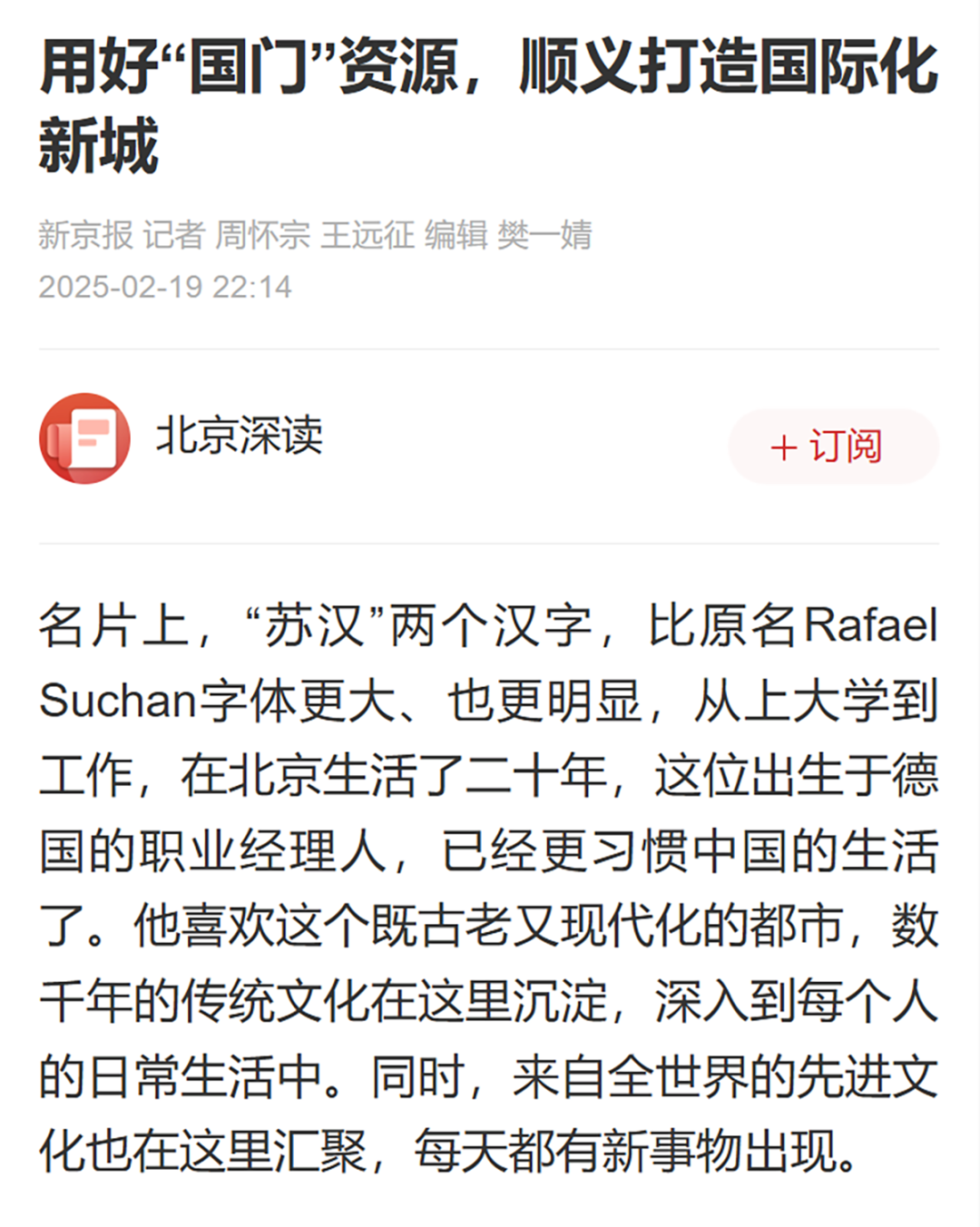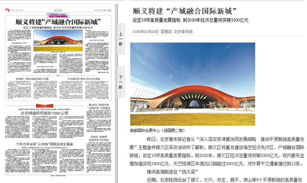 《新京报》19日发布的《用好“国门”资源,顺义打造国际化新城》与《北京青年报》20日发布的《顺义将建“产城融合国际新城”》也从不同角度诠释了顺义如何利用独特的地理位置和资源优势,加速推进国际化进程,构建宜居宜业的产城融合新城。