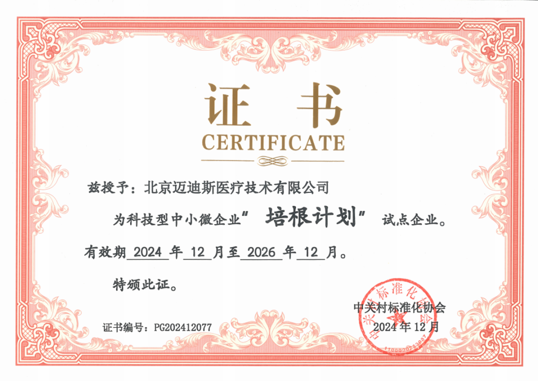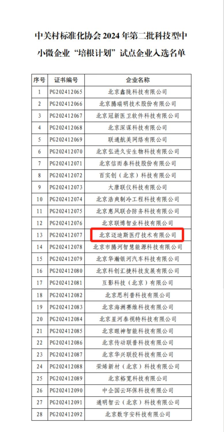 北京迈迪斯医疗技术有限公司成为“培根计划”试点企业。