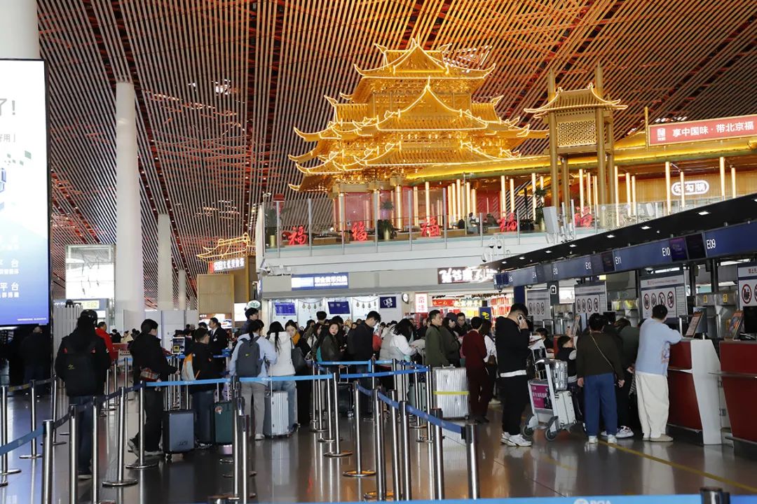 春运期间,北京首都国际机场打造多处节日主题景观,增设自助值机设备,针对特殊旅客群体推出免费冬衣寄存、轮椅借用、爱心陪伴等服务项目。同时,根据客流情况动态调整现场保障人员及车辆安排,延长机场巴士运营时间并增加发车频次。北京首都国际机场旅客端“一体化”服务平台(“北京首都国际机场”官方小程序和App)提供“安检物品自查”“临时乘机证明办理”“服务产品预约”“实时交通信息查询”等便捷服务功能,助力旅客高效出行。