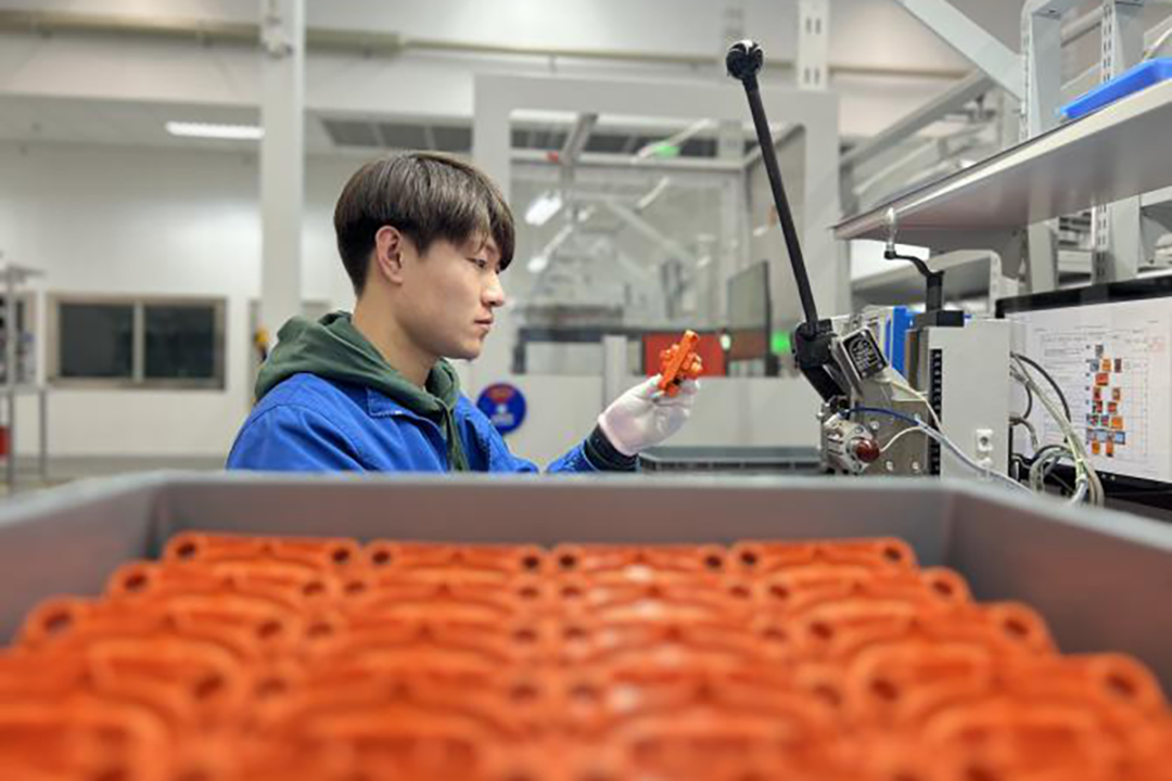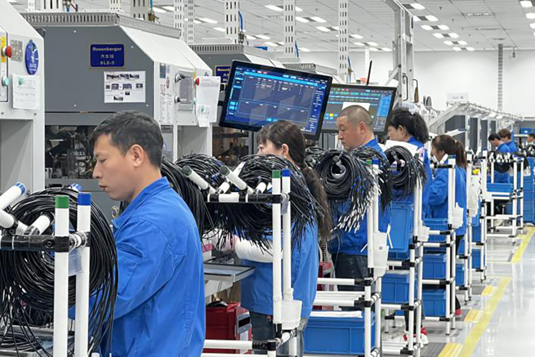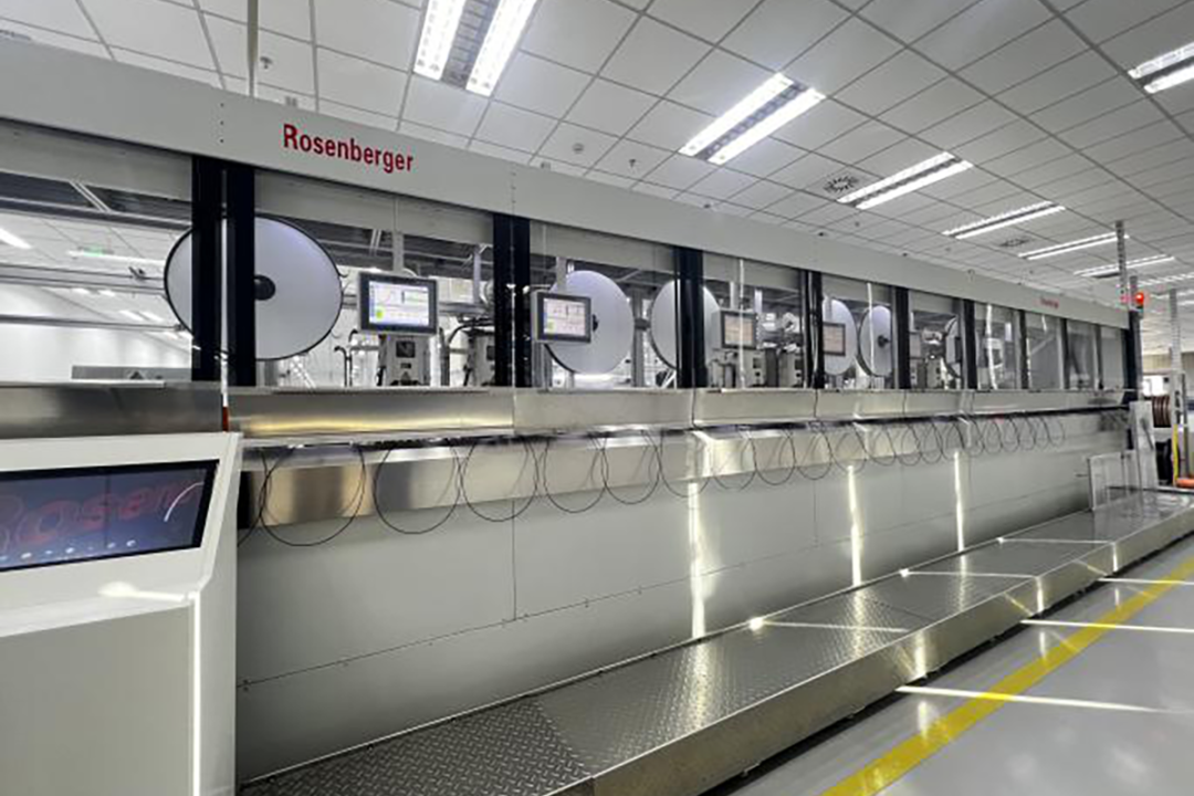 罗森伯格亚太电子有限公司是全球前列的高频、高压和光纤技术领域连接解决方案供应商,汽车电子连接器作为公司开年重点产品,生产线24小时不间断运转,车间内一片繁忙景象。工人们各司其职,机器马力全开,最快6秒就能下线一根连接器,每天产量高达约8万根。