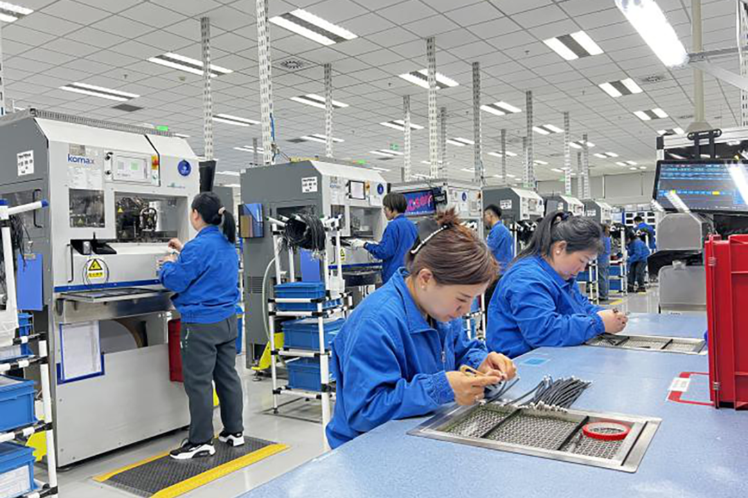 工人加紧生产汽车电子连接器。