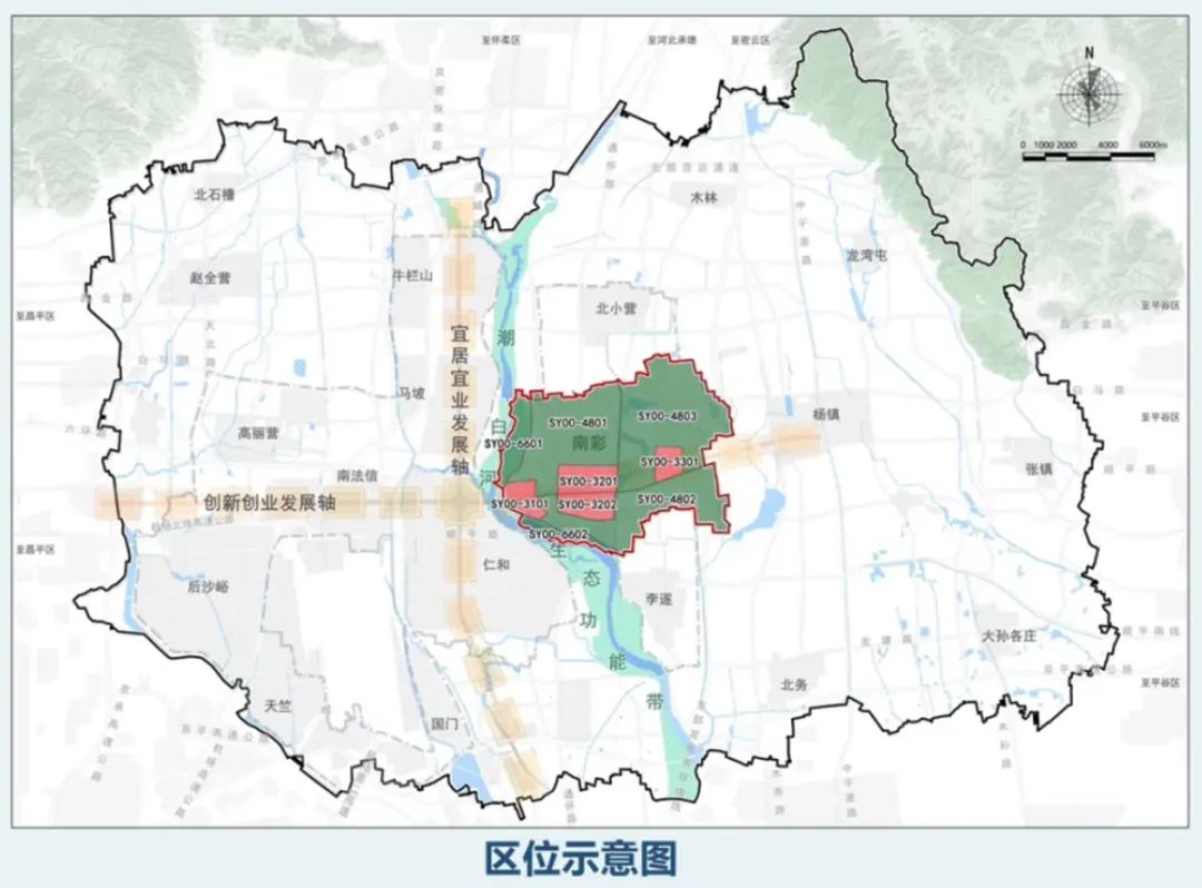 根据此前批复的《南彩组团SY00-3101、3201等街区控制性详细规划(街区层面)(2021年—2035年)》,顺义区南彩组团位于顺义新城潮白河东岸门户地区,是新城创新创业发展轴与潮白河生态功能带交汇区域,总面积约5812.47公顷,共包含9个街区,其中4个建设主导街区、5个生态复合街区。