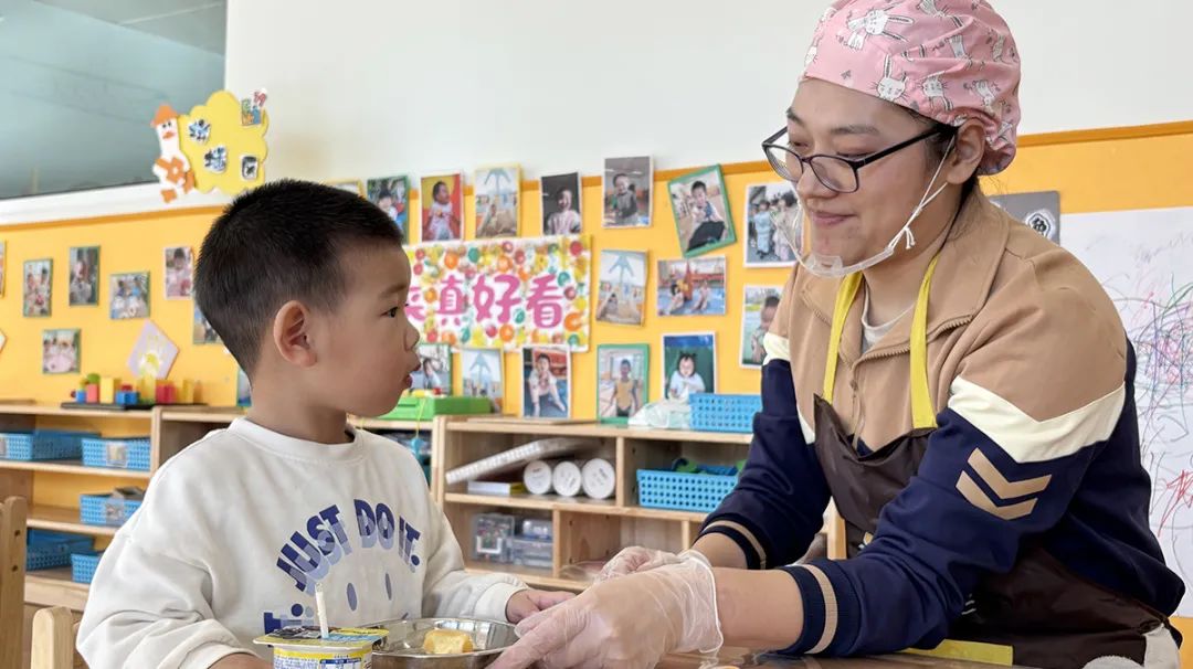 幼儿园开展普惠托育服务,师资无疑是重要因素。园所多方衡量后,选定了3名教师进行严格培训。招生前,通过了区教委的督查评估。“年龄小一岁,区别还是很大的。”刘瑞红感慨。像是吃饭,托班孩子最开始可能还需要喂饭,上完厕所及日常活动中,要时常检查衣裤是否穿好,有无出汗等情况,这就需要老师更加耐心、细心。