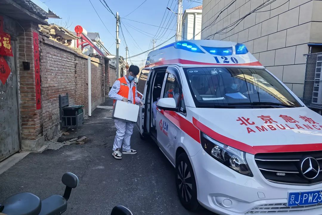 救护车到达后,刘春洁协助医护人员小心翼翼地将老人抬上担架,跟随救护车一同前往医院。