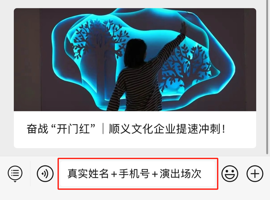 您发送“真实姓名+手机号+演出场次”至“北京顺义”微信公众号,即可参与抢票。