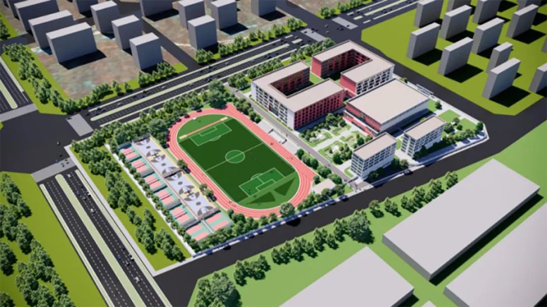 同时配套宿舍楼、田径场