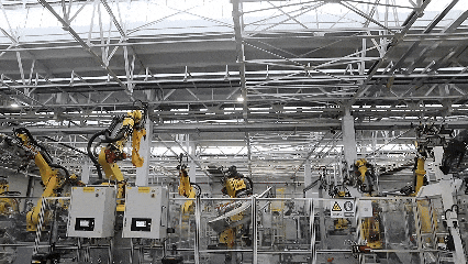 走进基地的焊装车间,第一印象便是科技感十足、自动化水平高。这里主要负责理想MEGA的车身焊接、调整、打磨等任务,拥有21条全自动生产线、600余台机器人,连接自动化率达到100%。车间内十分吸睛的自动导引运输车“奔波”在各条生产线之间,替代人工、叉车等作业车辆搬运物料。