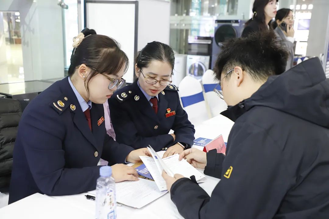 在政企互动环节,区检察院、区市场监管局、区体育局、区商务局、后沙峪税务所等工作人员现场办公,为企业、商户提供政策指导。