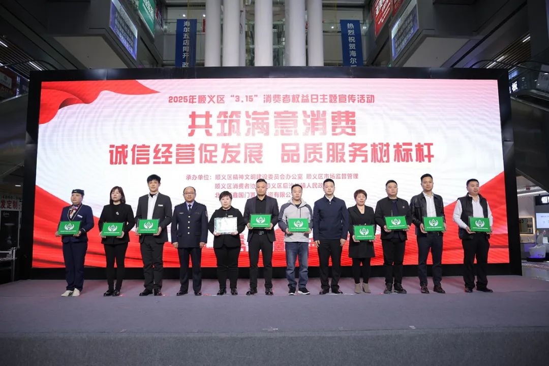 顺义区依据地区影响力、严格落实消费维权第一责任人等标准,评选国门1号为放心消费商圈,并现场为其授牌。