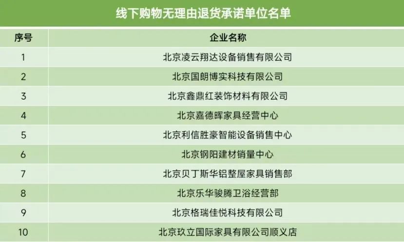 截至目前,顺义区自愿承诺线下购物无理由退货单位有北京居然之家顺西路家居建材市场有限公司、北京新世界千姿百货有限公司、北京凌云翔达设备销售有限公司等共16家。