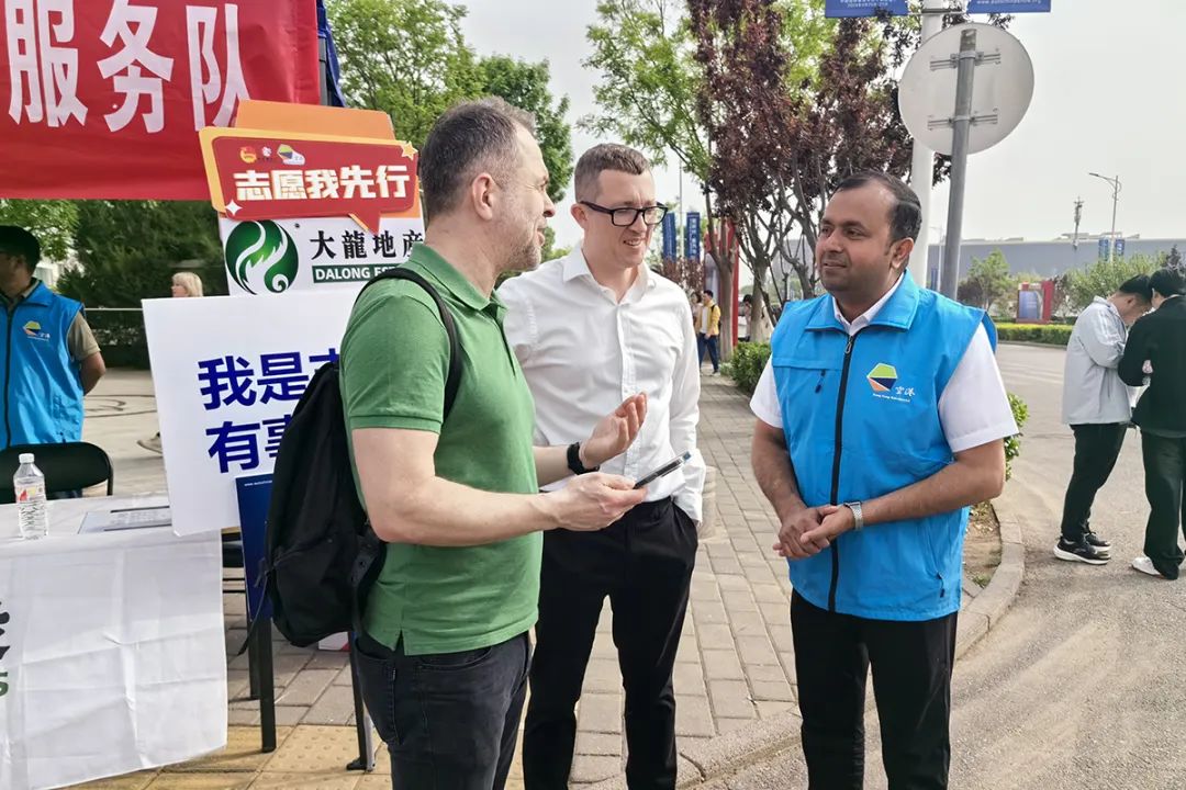 来自美国的Dennis Brown带着女儿体验植树,他说:“他们教我怎么植树,现在我们一起种下春天。这里的志愿服务就像多棱镜,让每个文化背景的人都能折射出独特光彩。”