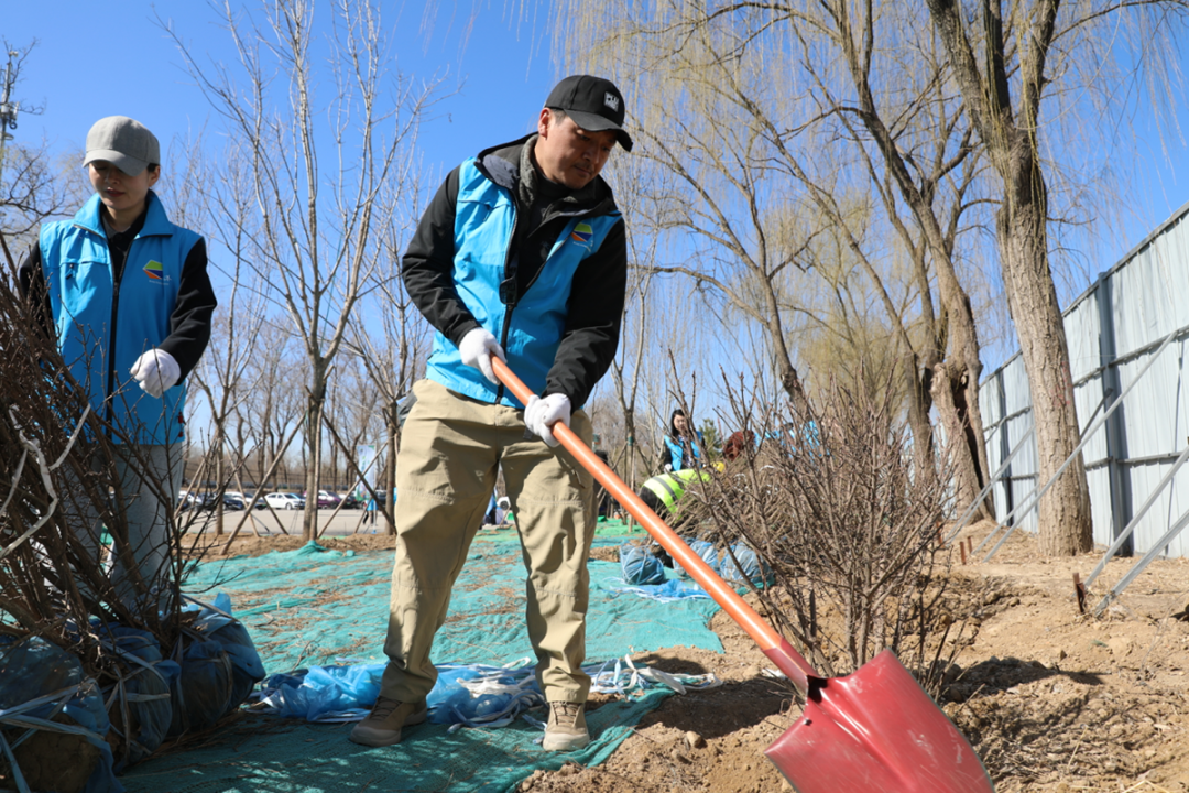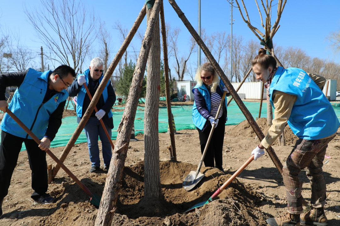 来自美国、英国、孟加拉国、印度的外籍志愿者与中国居民并肩挥锹,种下象征友谊的丁香、油松、欧洲雪球苗,形成一片“国际同心林”。