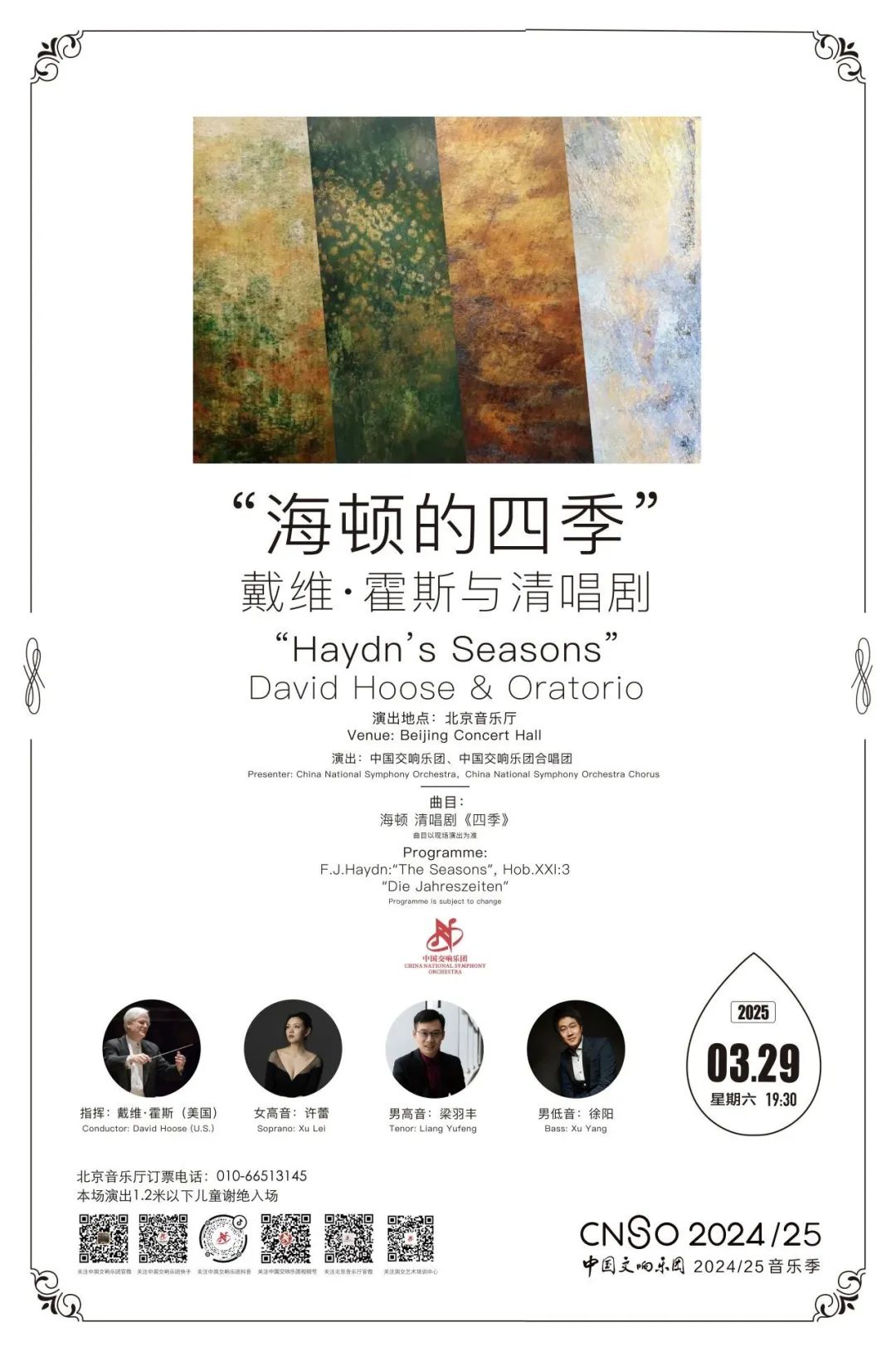 3月29日的“海顿的四季”音乐会将上演海顿的清唱剧《四季》。届时,中国交响乐团合唱团与三位歌唱家——女高音许蕾、男高音梁羽丰和男低音徐阳将共同演绎。这部作品在国内很少上演。清唱剧这一体裁简单而言可以理解为没有道具、服装和舞台布景的大型声乐套曲。它与歌剧具有一些相似的元素,如独唱中的宣叙调、咏叹调、咏叙调,重唱以及合唱,且具有相对完整的戏剧结构和复杂的故事情节。