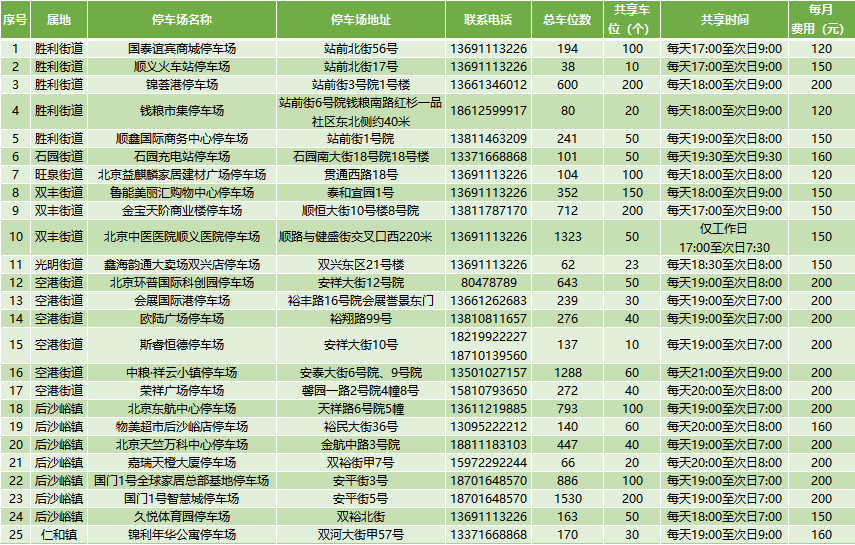 顺义区25处经营性备案停车场提供错时共享停车位。
