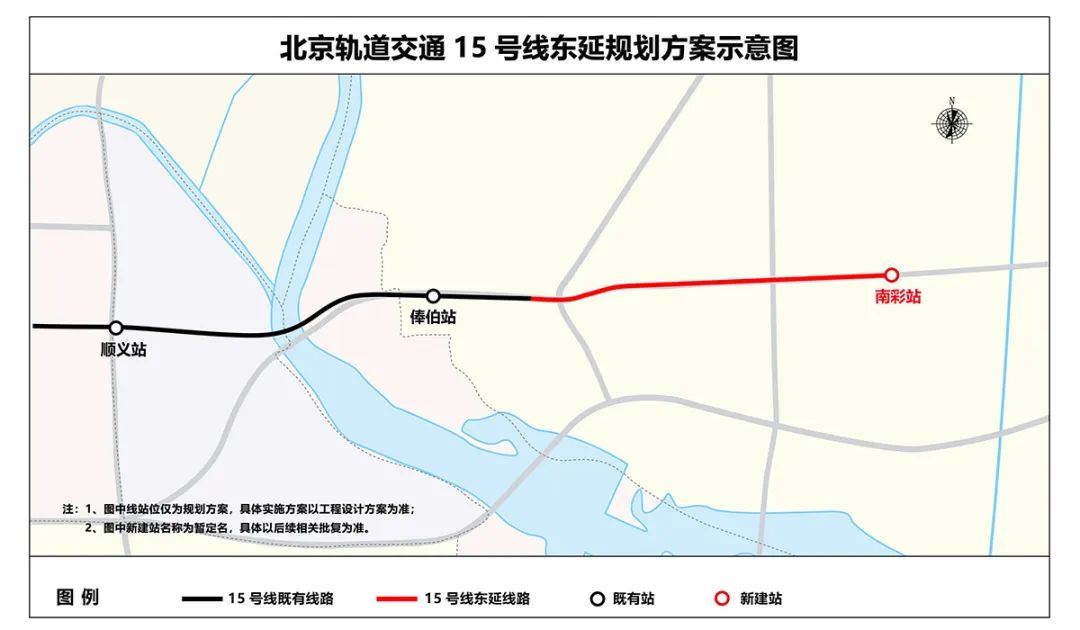 北京轨道交通15号线东延,是国家发展改革委批复的北京轨道交通第三期建设规划项目之一,是轨道交通线网中的地铁普线,覆盖顺义区南彩组团。项目的建设,可进一步加强顺义河东地区与中心城区的便捷联系,支撑顺义创新创业发展轴向河东地区拓展。