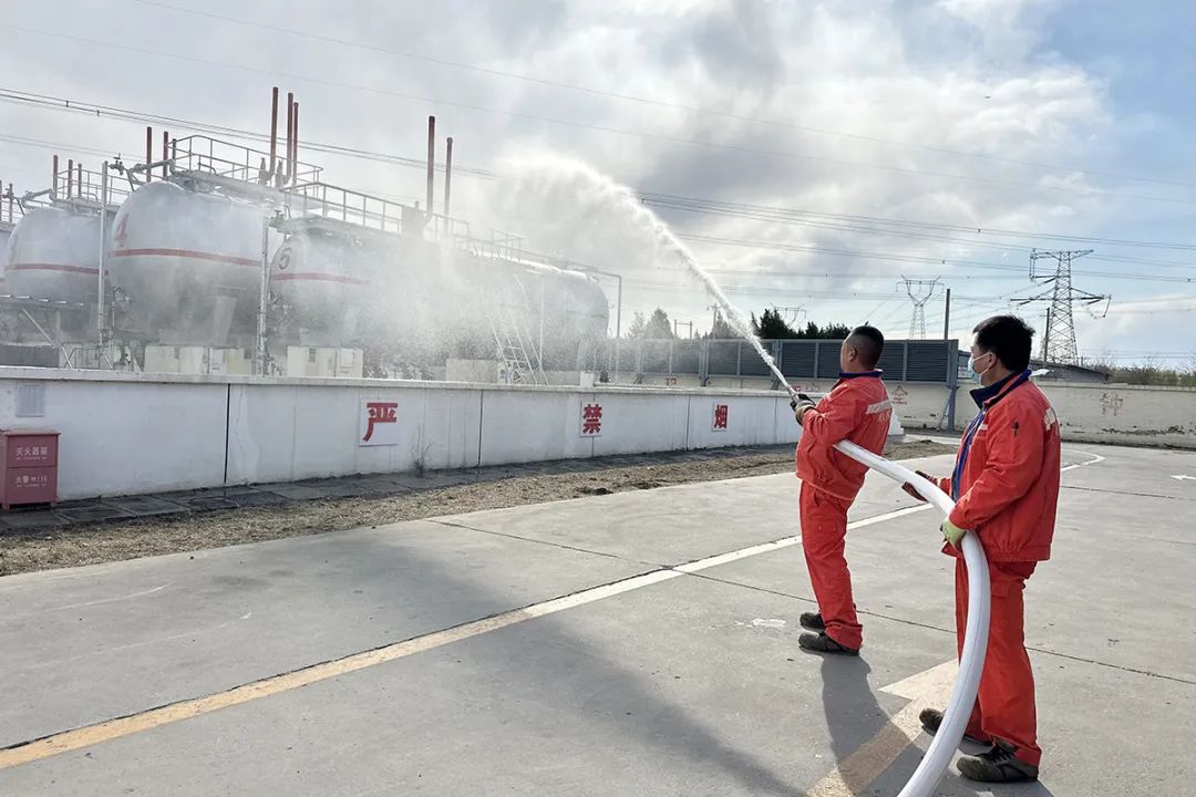 “罐区发生泄漏,立即启动应急预案!”在顺义宏达液化石油气有限责任公司,一场模拟液化气泄漏的消防演练正在展开。警报响起后,员工迅速疏散、确认险情情况,使用消防水带和喷淋设施降低罐区液化气浓度,险情被迅速排除,通过实战演练,拧紧燃气“安全阀”。