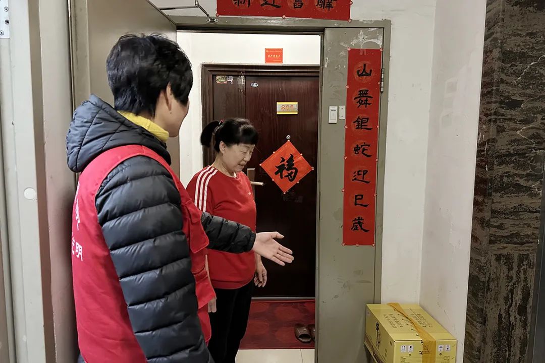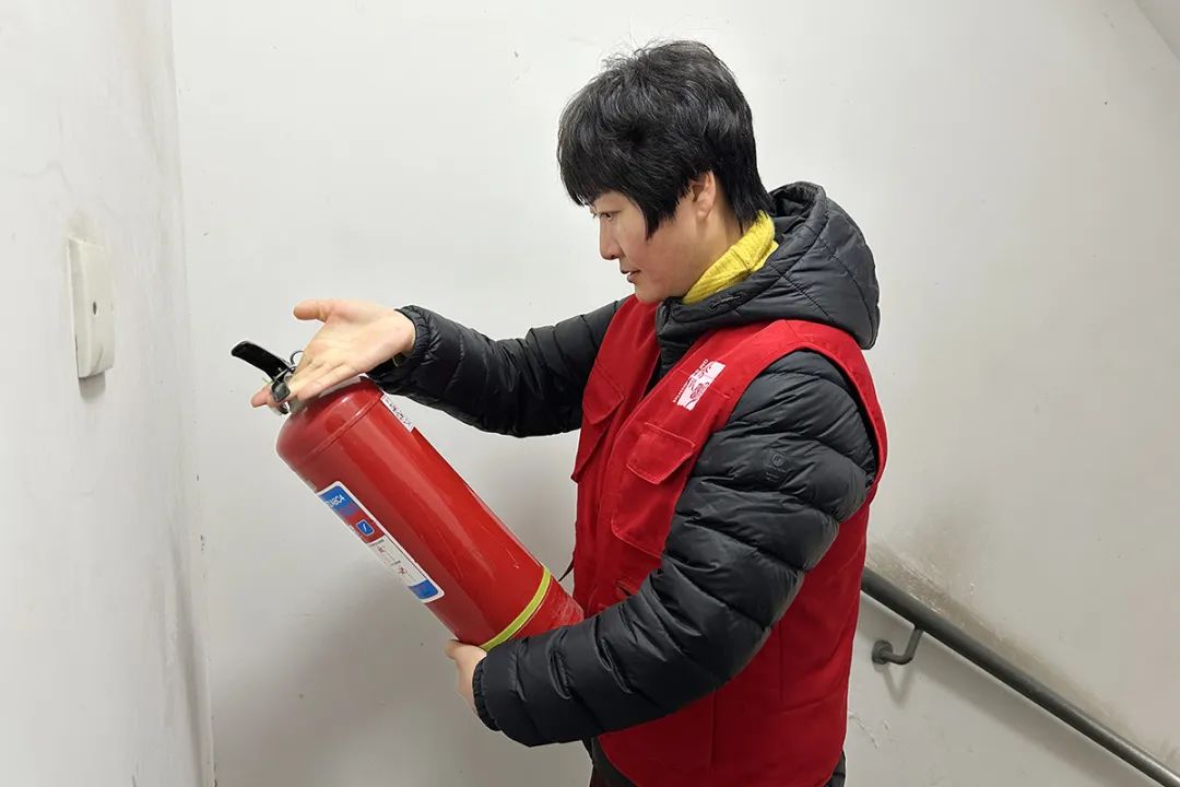 “楼梯间的自行车咱们推到楼下,保证楼道畅通。”在光明街道绿港家园四区,居委会工作人员逐层排查楼道堆物,提示居民及时清理杂物,并检查楼梯间、楼道内灭火器状态,为楼道“清障”,畅通生命通道。工作人员还上门为独居老人等群体普及消防知识。