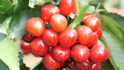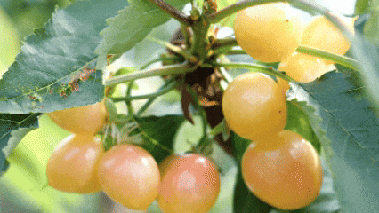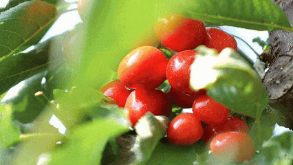 “辉煌”樱桃果色如琥珀,甜润多汁,有淡淡奶香;“布鲁克斯”樱桃红得发紫,入口爆浆,有“冰糖脆”的美誉;“美早”樱桃果实个头大,果肉有弹性,风味更足。