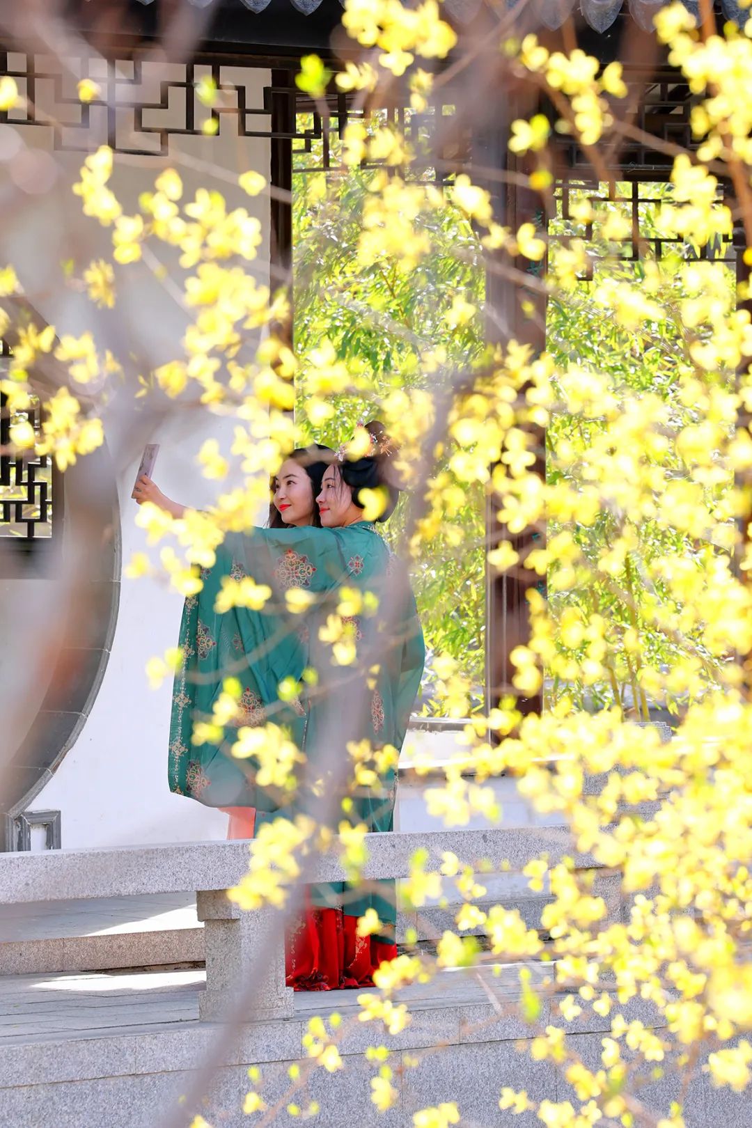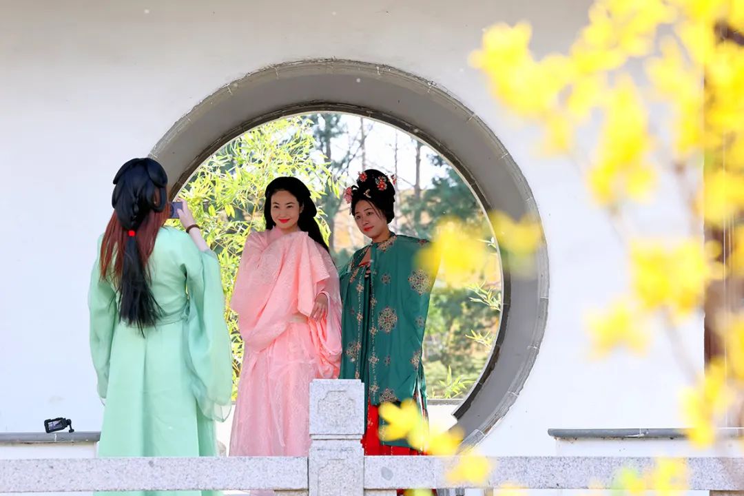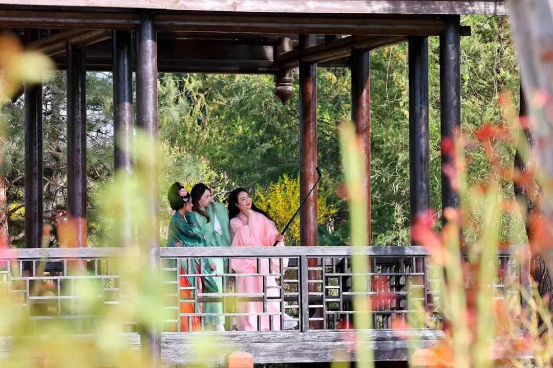 人们或身着汉服优雅漫步