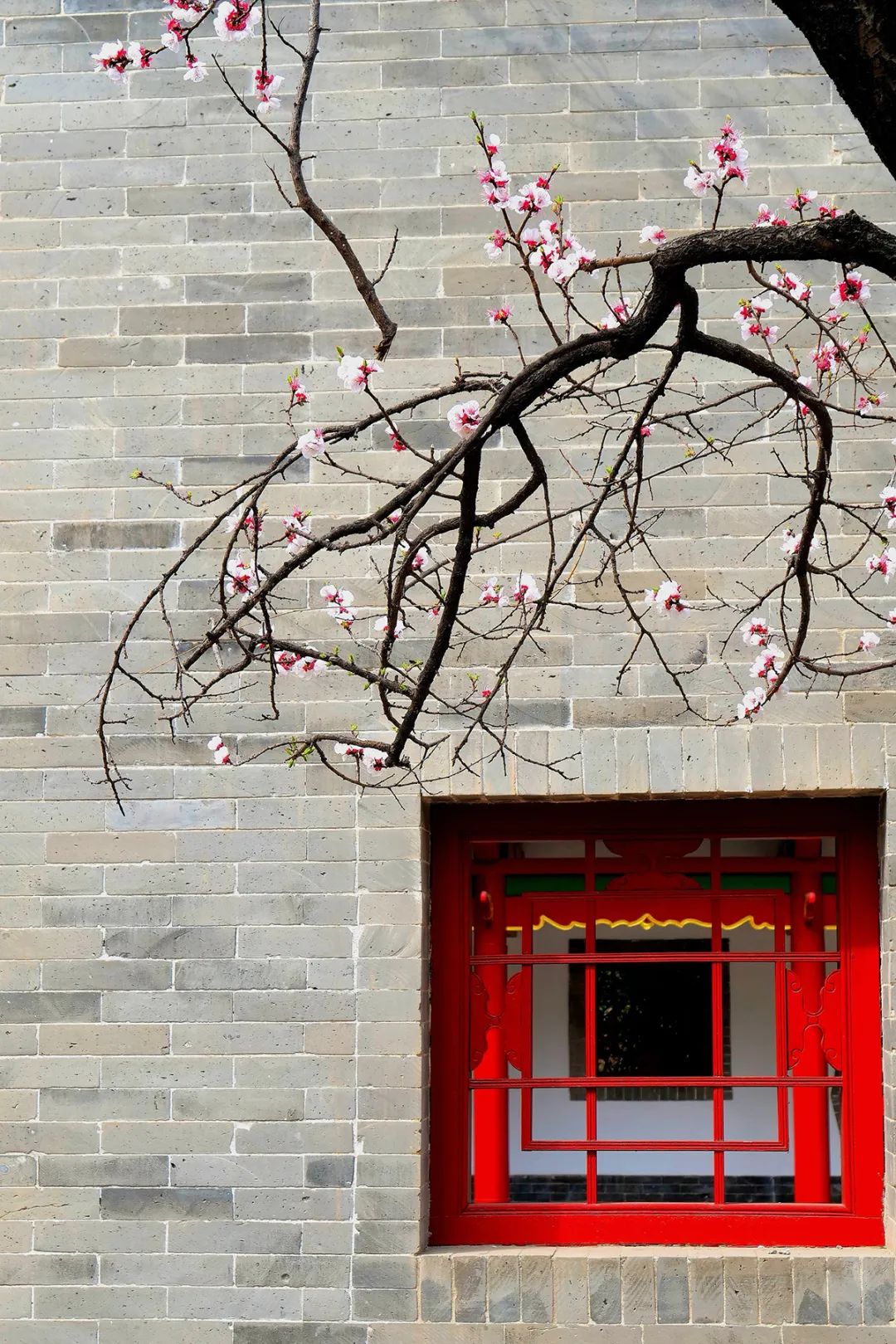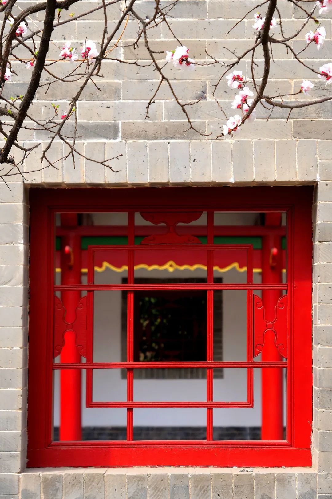 与窗棂上的朱红相互映衬