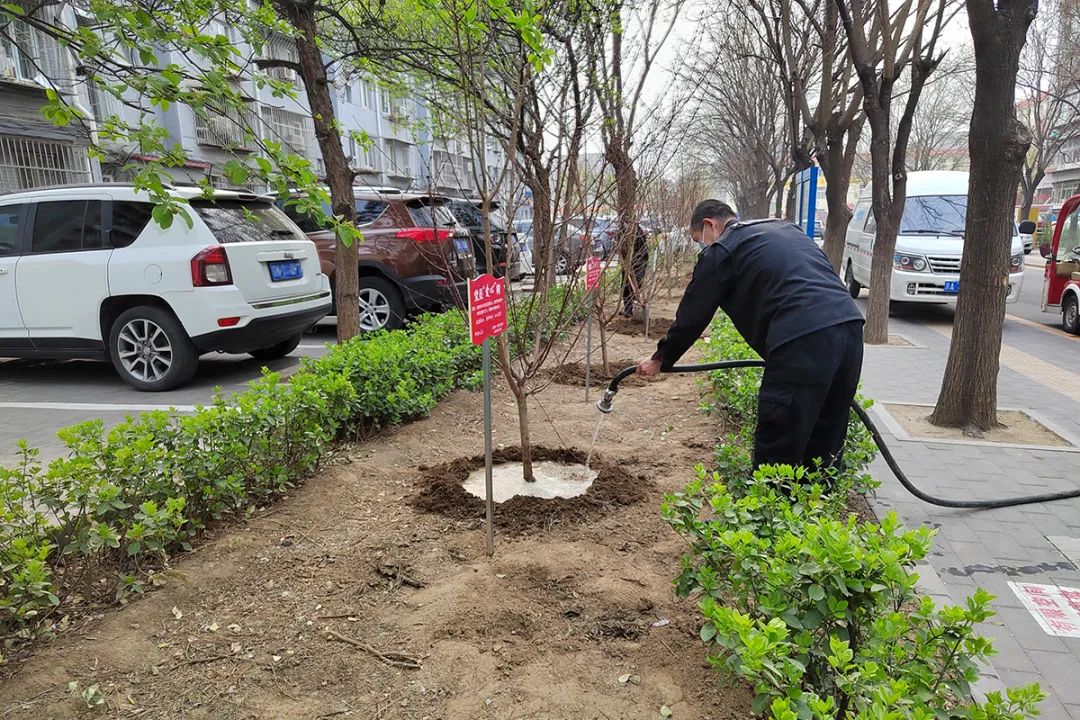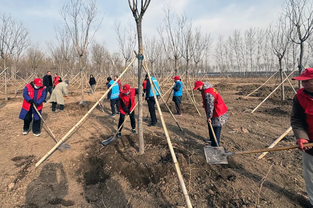 高丽营镇组织党员干部群众在前渠河村开展义务植树活动。大家分工协作,挥锹铲土、扶苗培土、提桶浇水……一棵棵银杏、海棠、紫叶李等树苗迎风挺立,勾勒出一幅生机勃勃的绿色画卷。