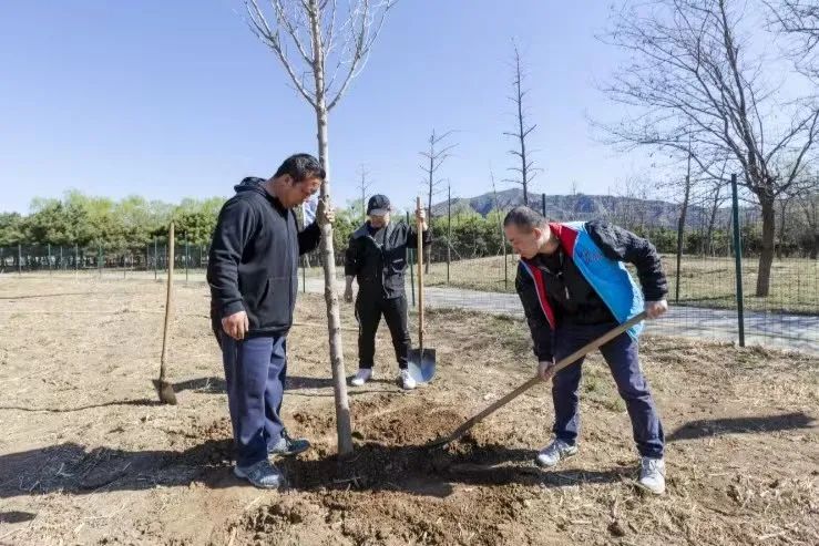顺义环卫公司组织干部职工走进马坡千亩森林公园开展义务植树活动。大家三五成群挥锹铲土、扶树填坑、提水浇灌……每一步都饱含对绿色的期许。