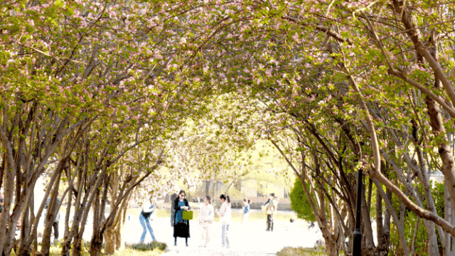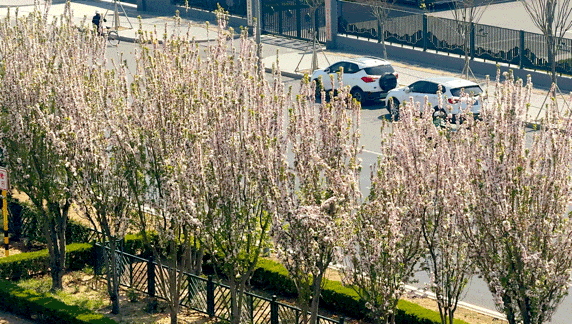白马路、顺平路、木燕路……顺义的公路在这个季节仿佛披上了“花的嫁纱”,美得彷若动画场景。海棠作为行道树列阵相迎,车速稍缓便可见花瓣扑向车窗,后视镜里翻飞的花浪,是春天的华服。骑行爱好者还可以感受春风裹着海棠花瓣和花香穿过胸膛,衣襟兜住的何止是春天,更是城市写给自然的十四行情诗。