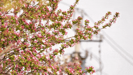 尤其是太阳城社区,海棠多了几分野趣,枝头探向阳台的花朵,像极了邻家姑娘递来的春日请柬。所谓“日常的诗意”,大抵如此。