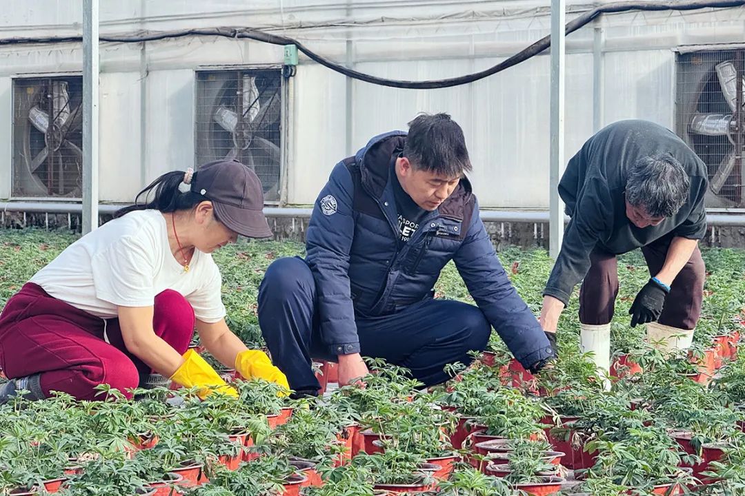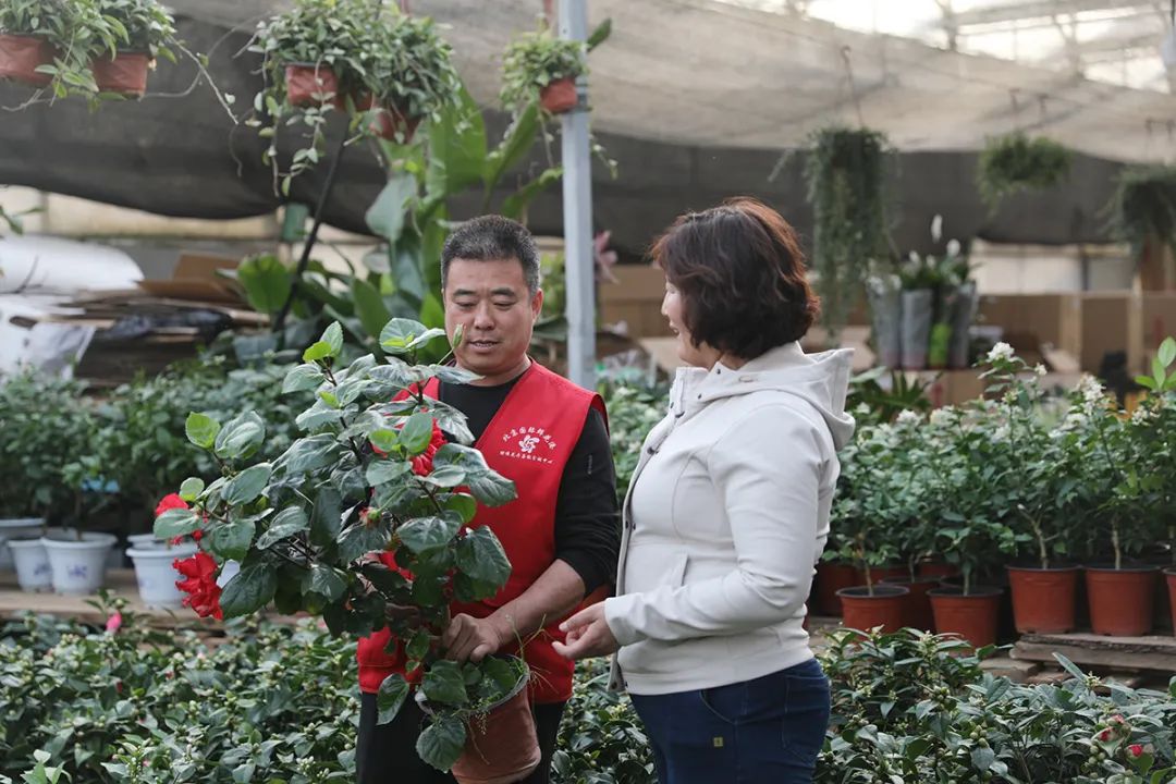 随着花卉产业的蓬勃发展,附近的花农逐渐实现职业身份的迭代。十年前,他们还只是个体种植农户,如今已转身成为训练有素的花卉产业工人。