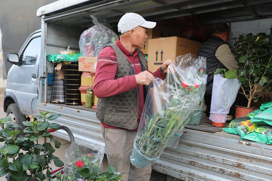 一盆盆生机勃勃的盆栽被搬上货车,一辆辆配送车蓄势待发。这些盆栽即将绽放在北京及周边地区各个角落,为不同地方的人们带去来自顺义的浪漫与生机。