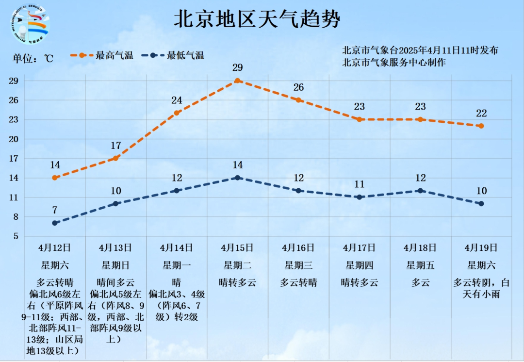 此前,北京市气象台已发布大风橙色预警。预计11日17时我市延庆、昌平、门头沟、房山开始出现大风天气,20时前后影响城区,夜间阵风逐渐增大至8、9级,12日06时至22时为风力最强时段,全市平均风力可达6级,平原地区阵风9~11级,延庆、昌平、门头沟、房山、怀柔、平谷、密云等区的部分地区阵风11~13级,山区局地阵风可达13级以上,并伴有沙尘和强降温天气。