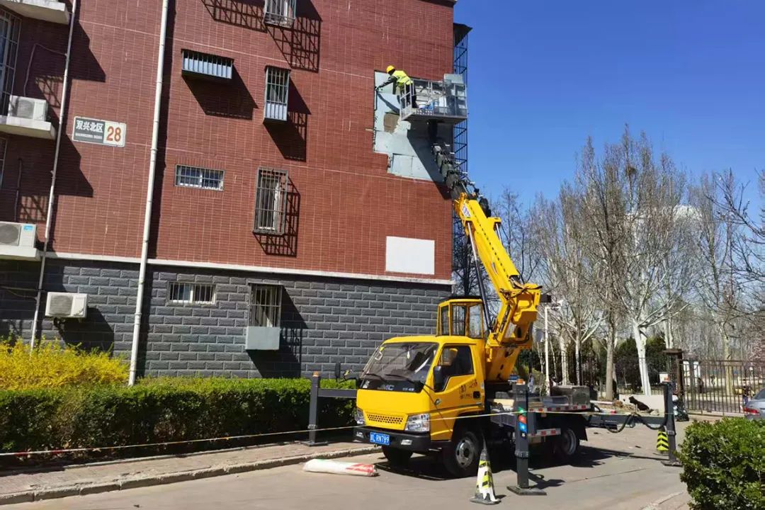 胜利街道双兴北一社区网格员在日常巡查中,发现28号楼东侧墙体出现开裂现象,存在安全隐患。4月11日9时,网格员迅速联系居委会拉起了警戒线。很快,专业维修人员携带工具赶到,操作举升车升至高处,清理掉松动的墙皮,经过紧张施工,完成了墙体的修缮工作,安全隐患得以消除。