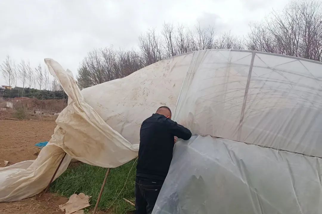 4月13日9时30分左右,大孙各庄镇老公庄村两名“两委”工作人员在村内巡查时发现,几名村民正在重新捆绑固定大棚薄膜的绳子。工作人员立即上前帮助村民。随后对附近大棚进行逐一排查。