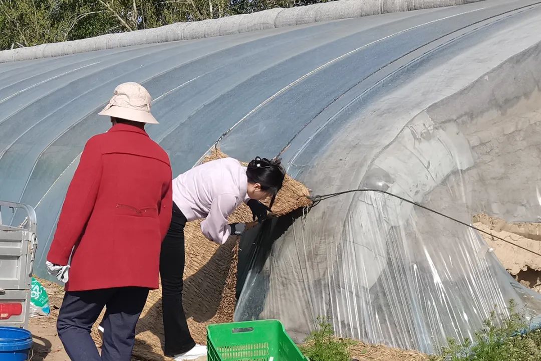 大孙各庄镇各村委会工作人员加强对辖区内农业设施进行巡查,减小大风对农业种植的影响,保护村民免受损失。
