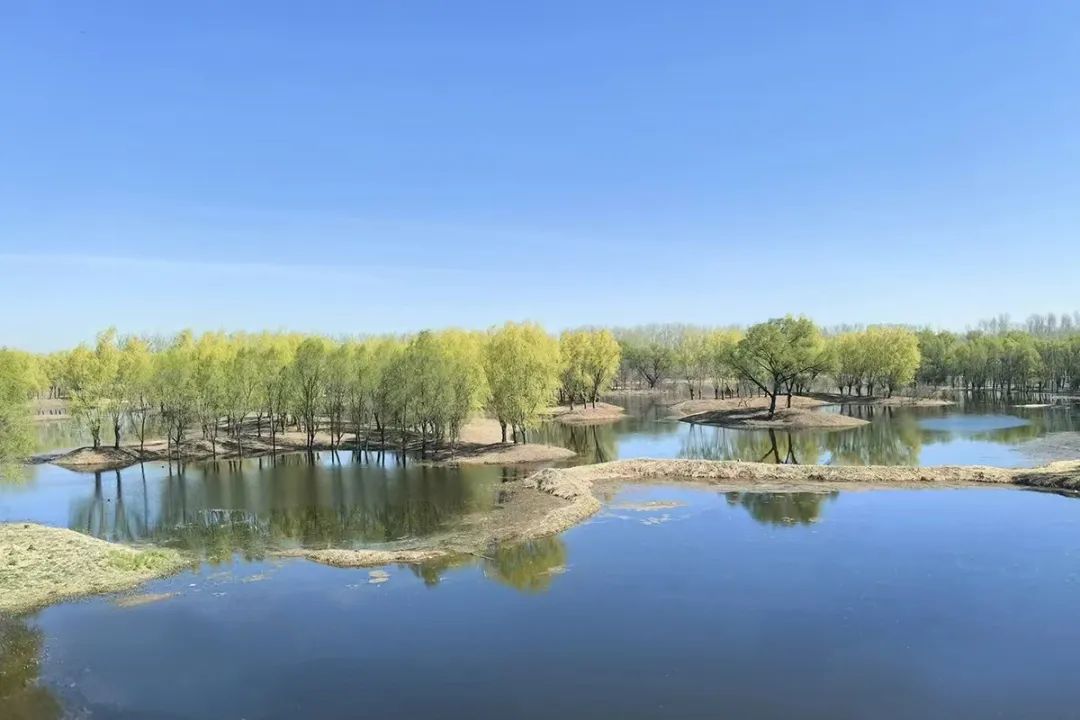 此次补水从3月12日开始,到3月24日完成,共计补水量50余万立方米。水源来自清澈的小中河,通过蓄滞洪区进水闸的“引导”,汩汩清流涌入公园,湿地景观一点点复苏,土地尽情吮吸着这饱含生机的河水,湖面逐渐拓宽,变得愈发清澈开阔,波光粼粼中倒映着岸边愈发葱茏的树木。