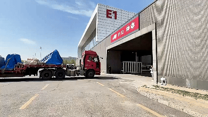 搭载展品的货车驶入卸货区。