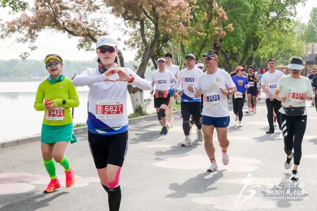 轻柔的春风掠过赛道,碧水在晨光的轻抚下泛起金色涟漪。作为“峪马”赛事最亮眼的标志性赛段,环湖堤路在去年“一路生花”的浪漫底色上,今年再添“漫游时空”彩绘主题,让跑者穿梭于绚丽色彩之间,沉浸式感受春日顺义的浪漫与激情。此外,赛道沿途绿树繁花相映成趣,环境干净整洁,加油助威声不绝于耳。参赛选手们跑在春风里,跑在花海中,用脚步丈量无尽诗意时光,用热情奔向被繁花晕染的熠熠远方 。