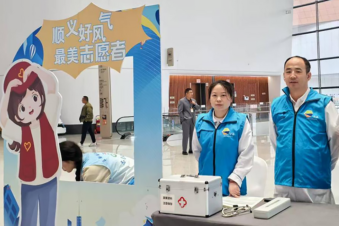 在不远处的咨询服务台旁,他的中国妻子正在熟悉展位。这对跨国夫妇的志愿服务日志里,记录着帮法国工程师找展台、为瑞士参观团推荐特色餐馆的温暖日常。