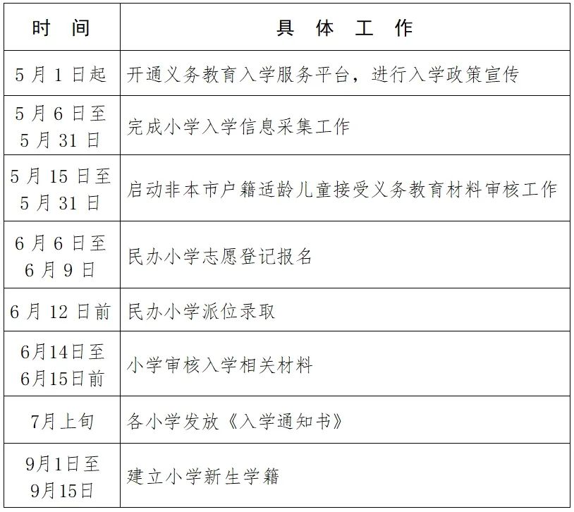 2025年顺义区小学入学工作日程安排