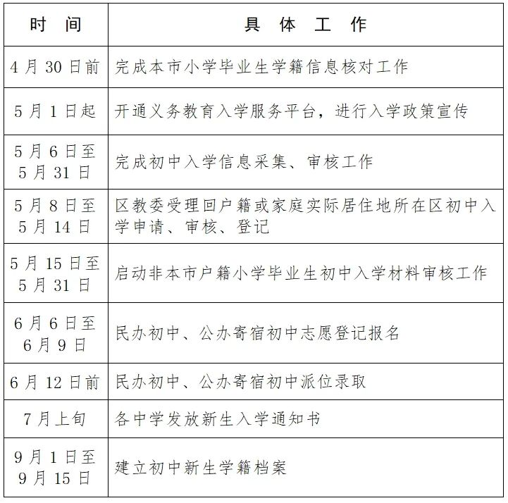 2025年顺义区初中入学工作日程安排