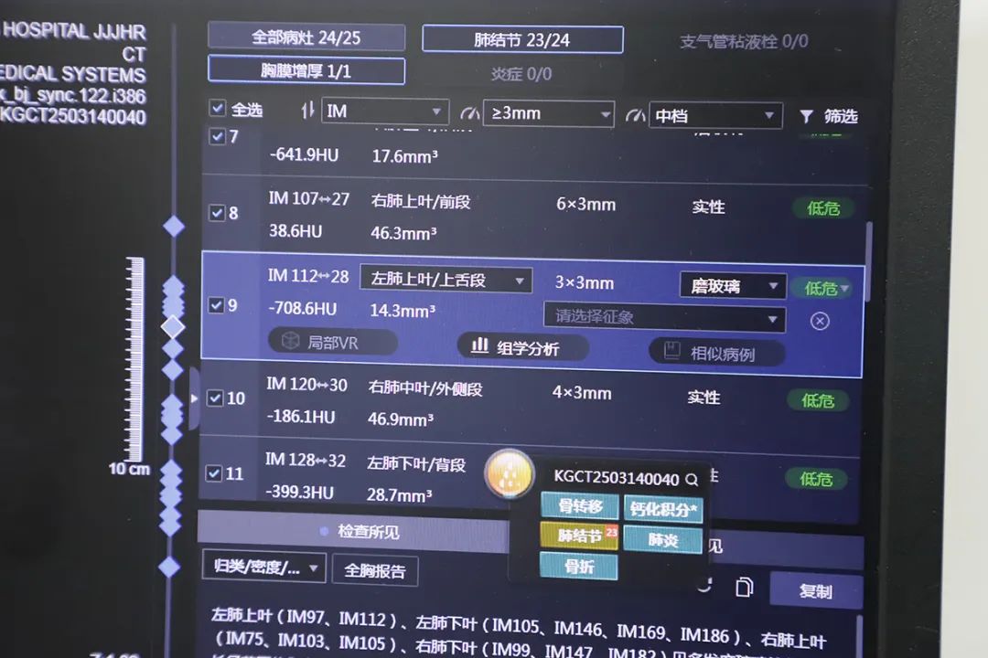 “作为基层医院,对于大家平时非常关注的肺小结节的检出、随诊和定性,这个系统给我们提供了很大的便利。”顺义区空港医院放射科主任黄晗介绍,该系统试运行以来,已辅助阅片2万余人次,诊断时间节省近30%,不仅提高了医生的诊断效率,还全面赋能基层诊断筛查,让居民在家门口就能享受到高质量的影像检查服务。