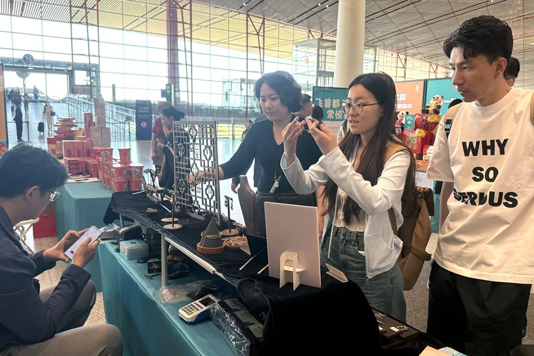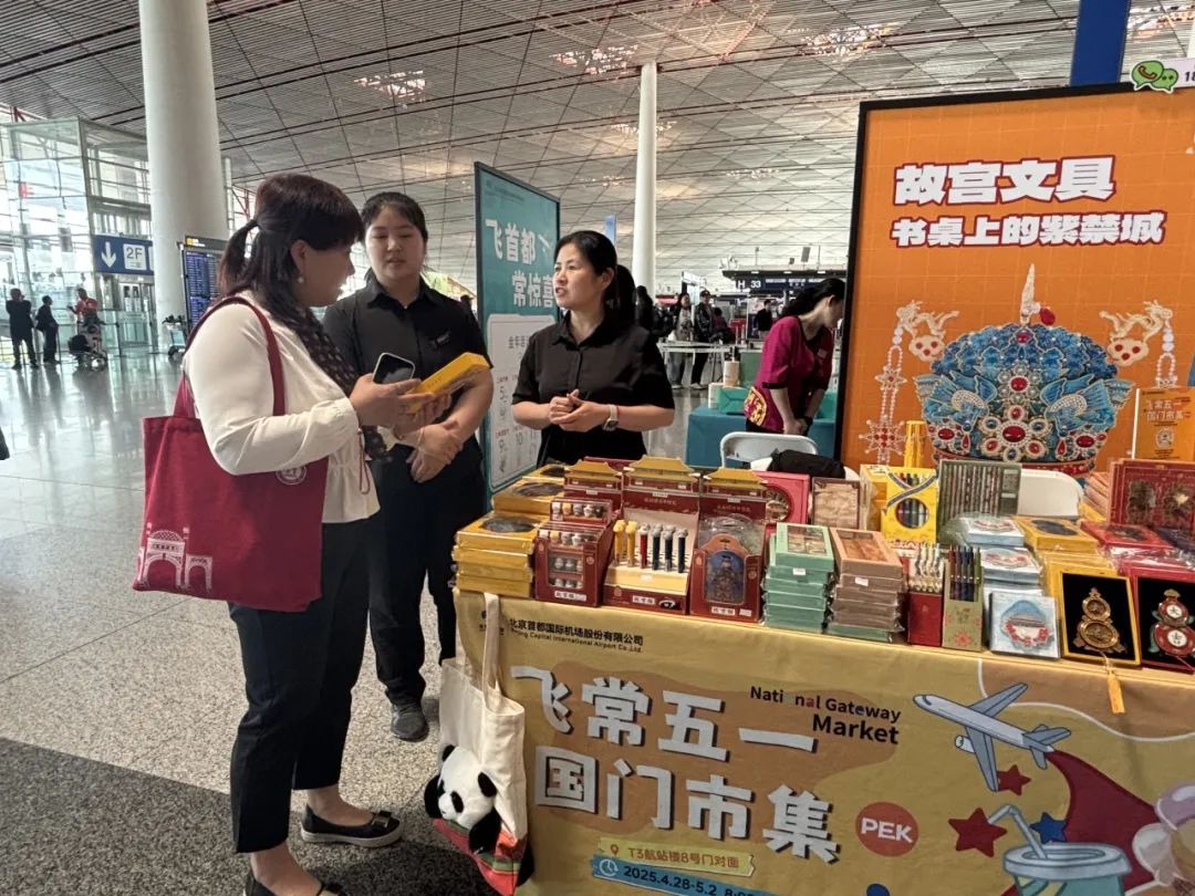 近日,北京首都国际机场在T3航站楼8号门对面开展“非常五一 国门市集”。作为机场首次打造的商业市集,这里汇聚了“北海礼物”“故宫文具”等文创品牌伴手礼,设计精美,创意独特。现场特别设置传统文化体验摊位,手绘纸扇、非遗台绣等互动项目让旅客沉浸式体验传统文化的魅力。稻香村的京味糕点、全聚德的经典烤鸭、遇见小面的地道川味、御食园的传统蜜饯等老字号与网红美味云集,从地域特色到潮流风味应有尽有。现场任意消费还可以参与抽奖活动,为旅途增添欢乐。