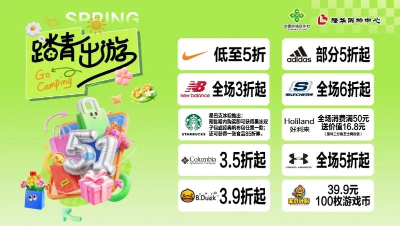 隆华购物中心以“踏青出游”为主题,联合入驻品牌推出超值折扣。