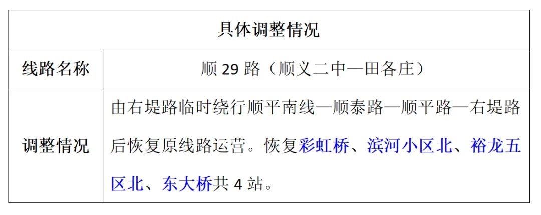 顺义区融媒体中心消息5月5日,区交通局结合道路通行情况,对因潮白河大桥双向断路临时调整的顺29路公交车进行线路规划,恢复4个公交站点,方便市民出行。