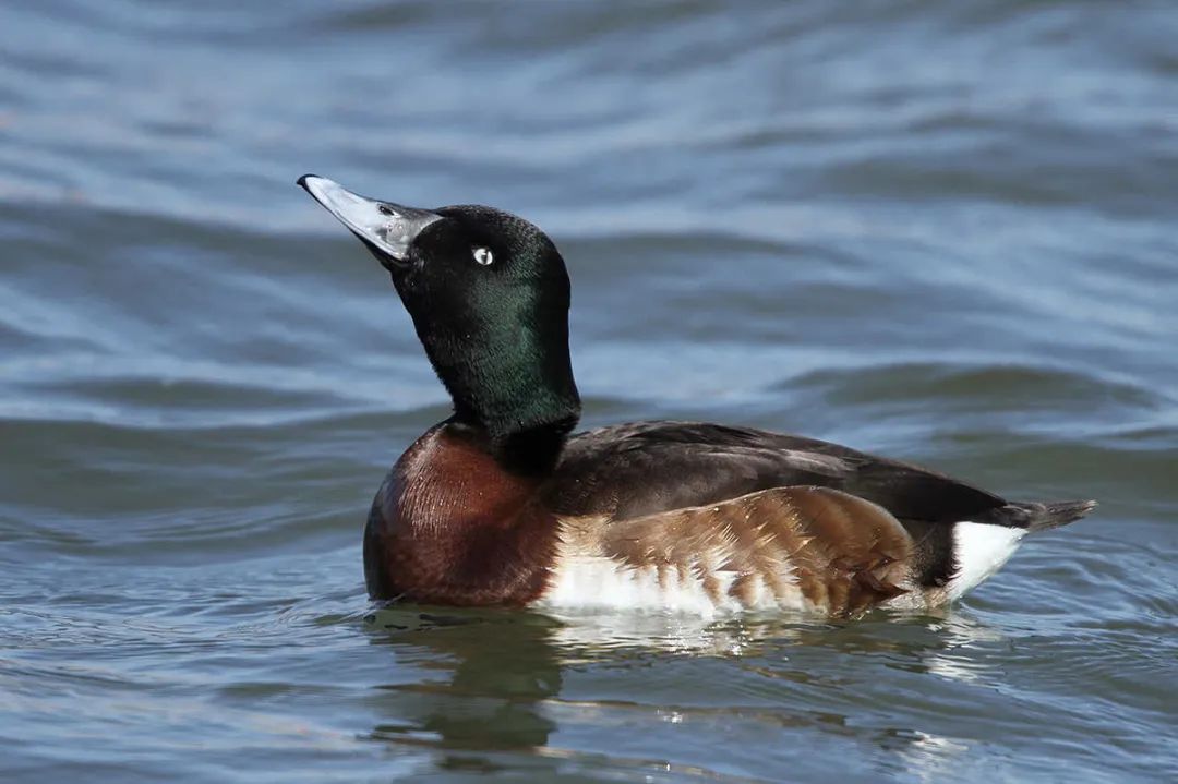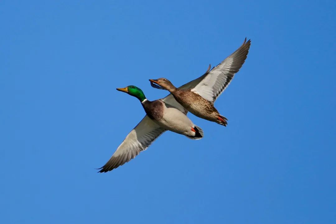 雄鸭头戴祖母绿“金属头冠”,颈系纯白领结,栗褐色胸甲自带丝绒光泽;雌鸭身着“焦糖玛奇朵”斑纹羽衣,低调中暗藏保护色黑科技。
