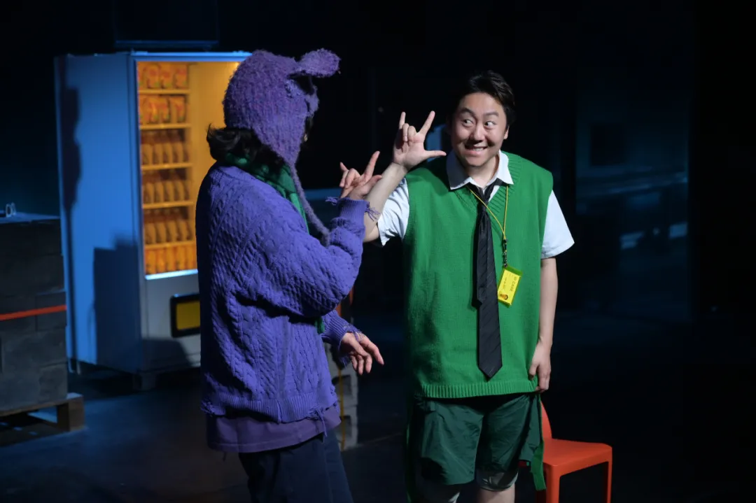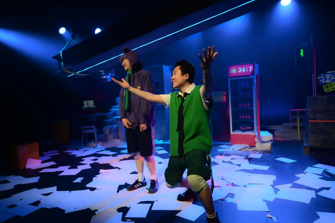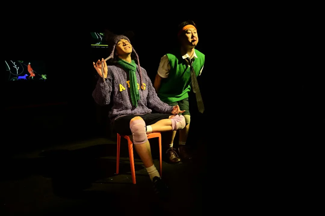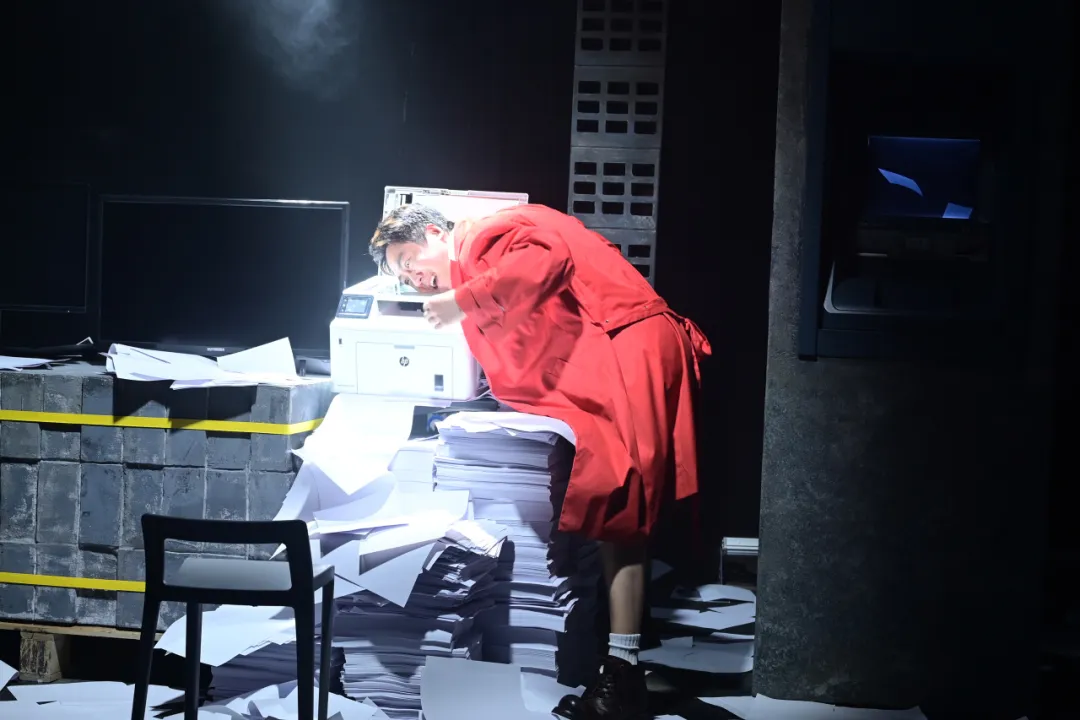 值得一提的是,现场舞美设计令人耳目一新!装置是很现实的、甚至跟生活中一模一样的东西,但是在某个瞬间就会出现超现实的变化。上一秒还是压抑的PPT地狱,下一秒直接蹦入漫画星空!多媒体投影+灯光魔法,把现实撕碎又重组,带领观众走进“发疯”世界!此外,剧中融入默剧、偶戏等元素,既充满童趣又暗含对物质社会的讽刺。