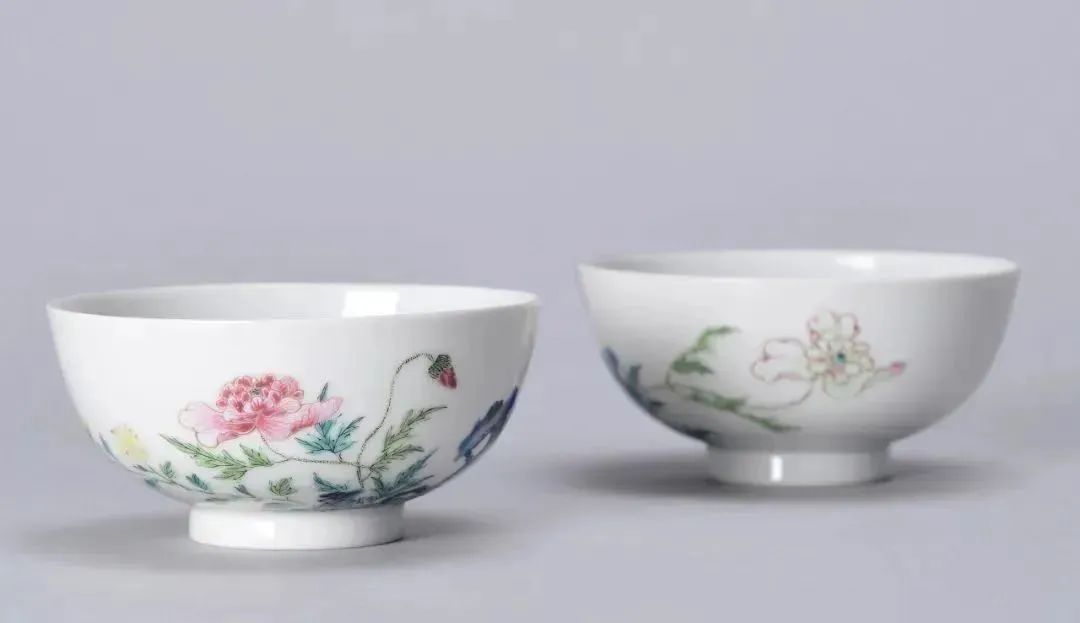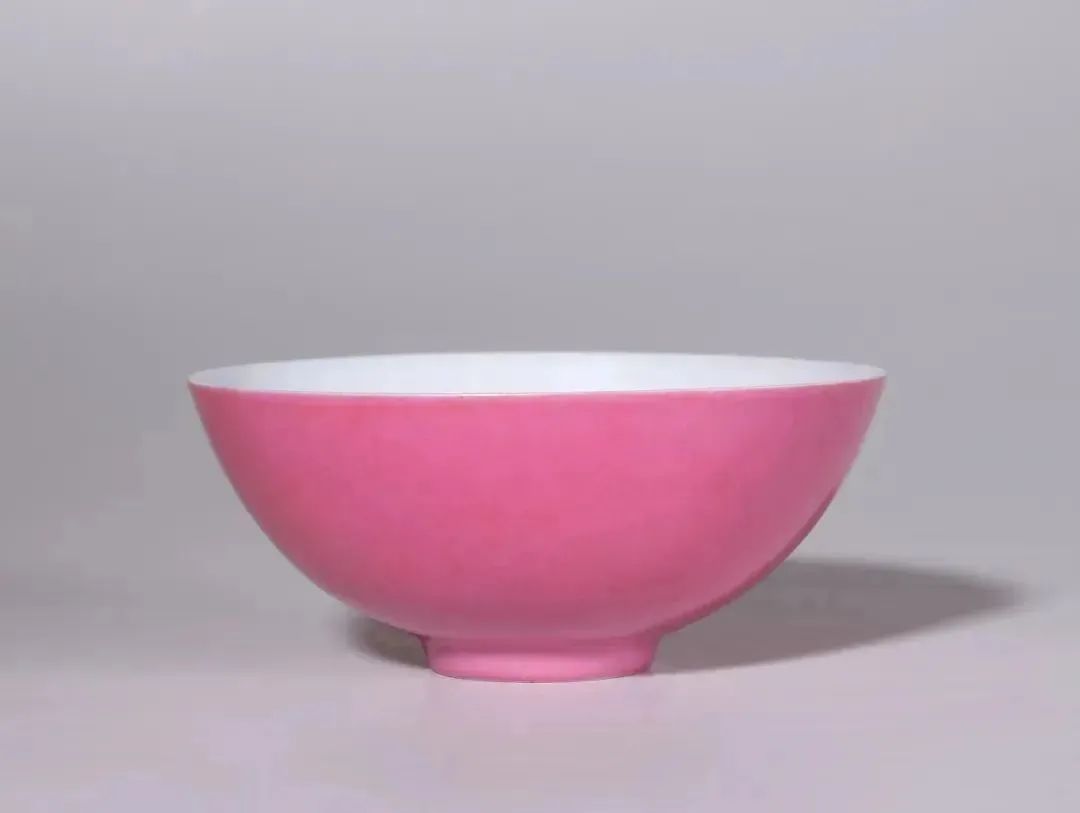 清雍正 外胭脂红内洋彩瓜果纹茶圆