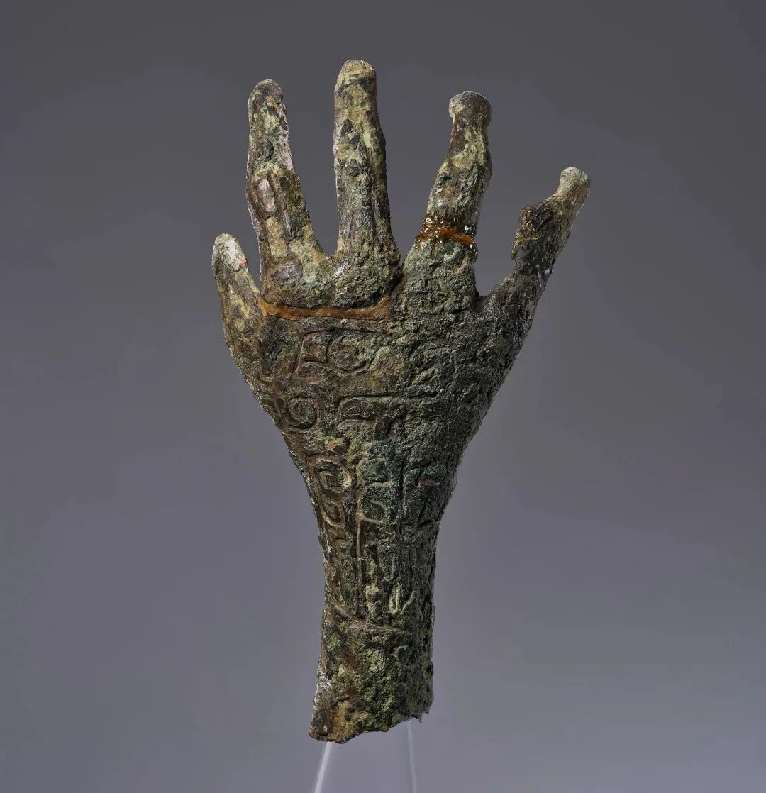中国社会科学院考古研究所藏,随葬于商朝武将亚长的棺内。该器为右手形态,略小于常人,手掌半握,关节清晰,指甲鲜明。手背饰饕餮纹,手柄内残留碳化木柄。其功能有“假肢”“权杖”“工具”等说法,用途存疑。