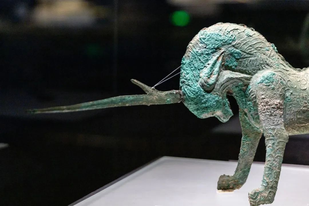 今年,电影《哪吒》的热映引发了广泛关注。影片中,许多形象的设计灵感源自商代文物。例如,两只呆萌的结界兽,其设计原型是三星堆的戴金面罩青铜人头像和铜鹰形铃,而它们手中的武器则参考了虎纹耳形铜钺。此次殷商大展将这些文物原型悉数集结,邀请到了展览现场。